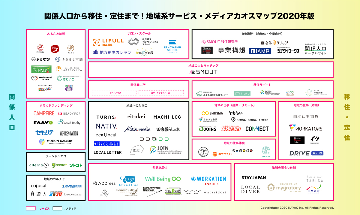 いかがでしたでしょうか。関係人口を生み出す領域が広がりを見せた2021年。移住を考えているみなさんにも、関係人口の創出をしたい地域のみなさんにも、「地域系サービス・メディアカオスマップ2021」が参考になれば幸いです。