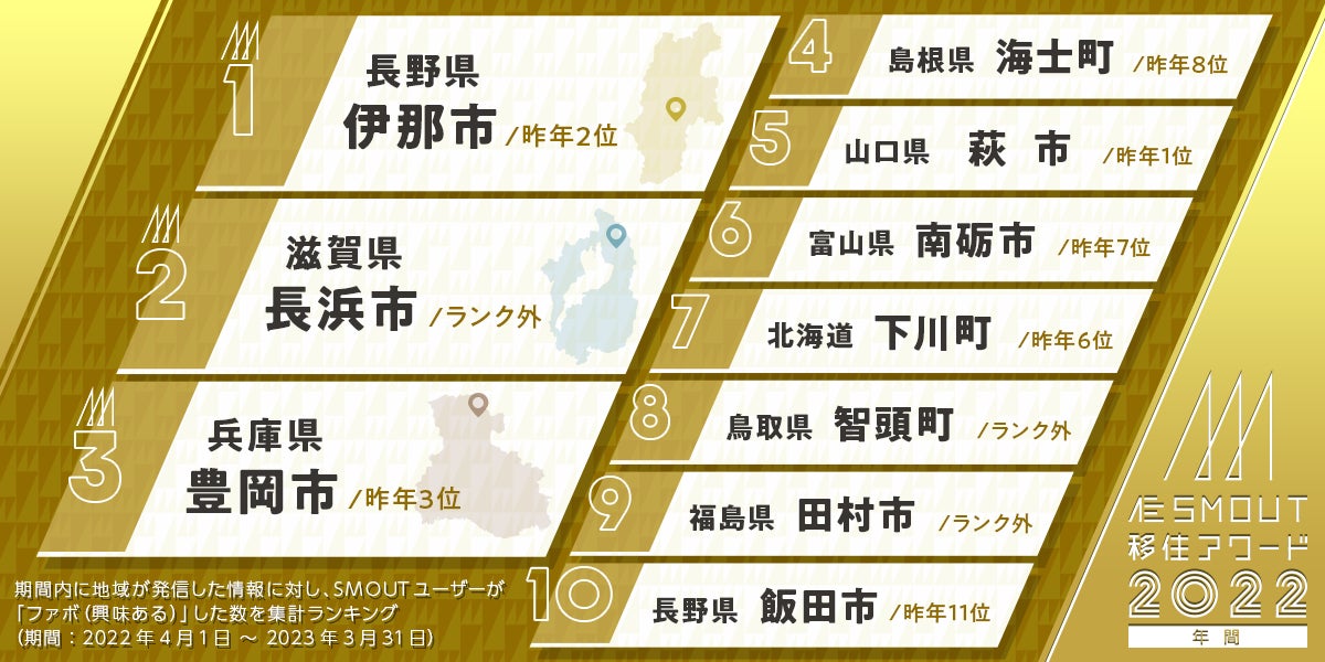 大きな変化が見られたのは、市区町村部門2位にランクインした「滋賀県長浜市」。2021年度「SMOUTアワード」ランク外から、2022年度上半期で4位に急上昇し、2022年度総合発表で、見事上位3位に初ランクインしました。