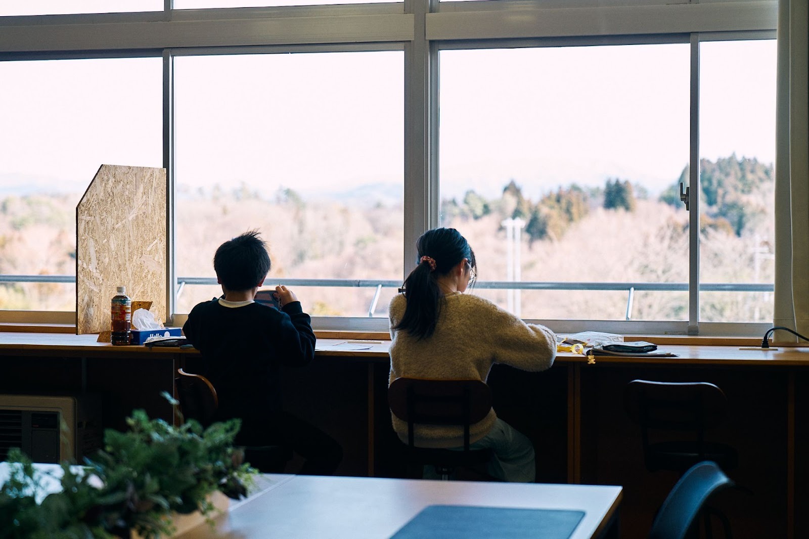 廃校となった旧石森小学校を活用した複合型テレワークセンター『terrace ishimori』のコワーキングスペースで、田村市在住の小学生と待ち合わせた。千葉県から福島県田村市へ移住してきた橋本姉弟は小学5年生のお姉ちゃんと、小学3年生の弟くんの二人組。両親とともに祖父母の家でのびのびと暮らしはじめて3年になる。船引小学校までの道のりを毎日歩いて通うのも、今ではすっかり日常だ。自然に囲まれた暮らしの中で育っている二人の“好き”を通して、このまちの魅力に触れてみた。