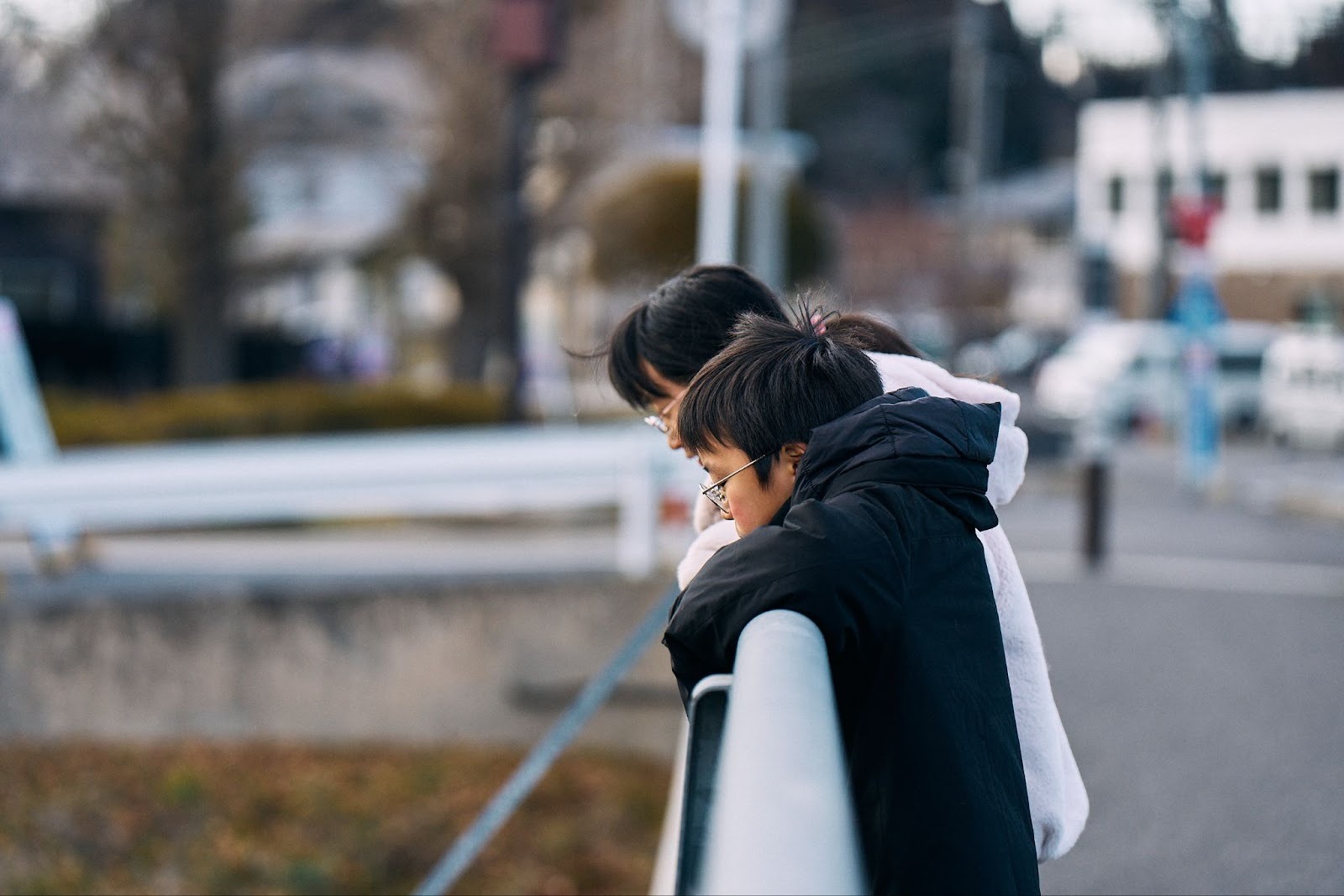 お菓子を手に、大滝根川沿いの道へ。二人はいつもここで石を川に投げて遊んでいる。特に競い合うわけでもなく、ただ石を川に投げ入れる。それだけでただ楽しいと思える。彼らの純粋さは田村市の自然によって育まれているのだろう。「ここ、カモとかサギがいるんだよ」と教えてくれた。春には桜が咲き、さらに美しい景色が広がるという。
